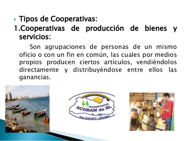 TIPOS DE COOPERATIVAS por Patricia Salmeron 1 Son aquellas que las integradas con productores que se asocian paraproducir, transformar o vender en común sus productos 2 Cooperativas de Servicio 21 a) De Ahorro y Crédito;. Las Sociedades Cooperativas de Producción son una forma de organización social integrada por personas físicas con base en intereses comunes y en los principios de solidaridad, esfuerzo propio y ayuda mutua, con el propósito de satisfacer necesidades individuales y colectivas, a través de la realización de actividades económicas de producción, distribución y consumo de bienes y servicios. SOCIEDADES COOPERATIVAS DE PRODUCCION Y SERVICIOS, EN EL SUR DE TAMAULIPAS, MEXICO SOCIETIES, COOPERATIVES OF PRODUCTION AND SERVICES, IN nos permitimos disentir, ya que en el presente trabajo los ejemplos de sociedades cooperativas que se desglosan, los cuales forman parte de su investigación realizada entre 02 y 05, con excepción.