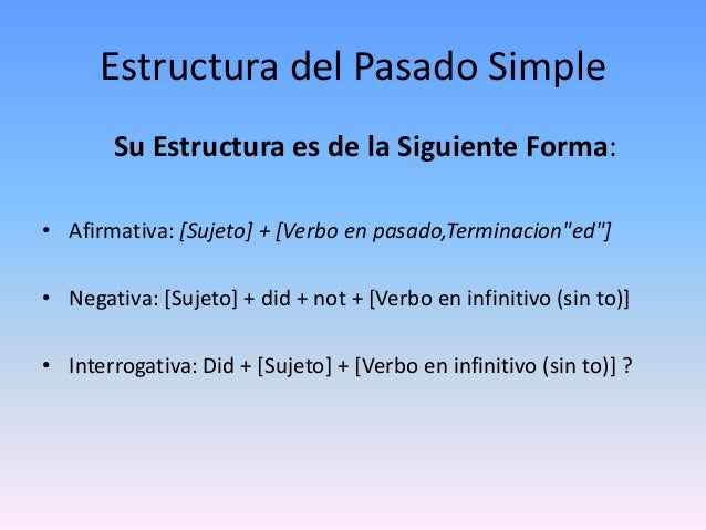Ejemplos De Pasado Simple En Ingles Afirmativo Negativo E Interrogativo Compartir Ejemplos