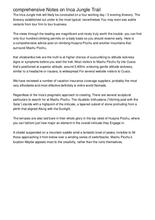 Comprehensive Notes On Inca Jungle Trail
