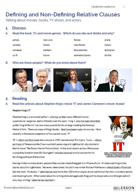 Defining And Non Defining Relative Clauses Esl Worksheet By Pfeltham