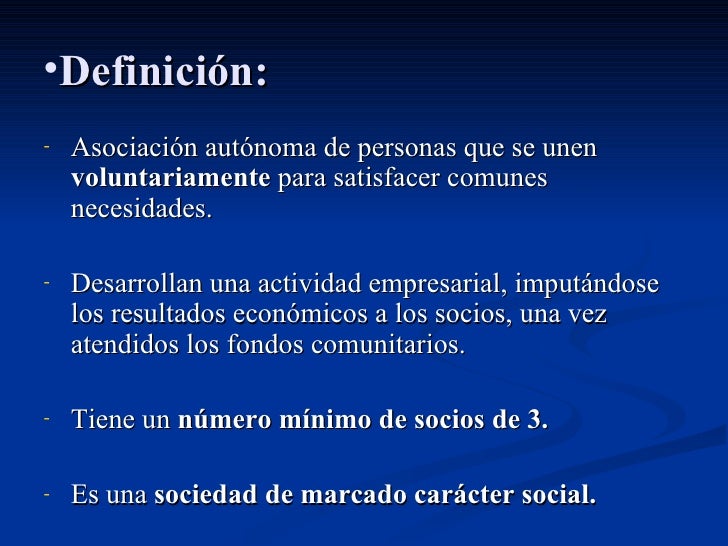 Qué es y cómo funciona una sociedad cooperativa A la hora de montar una empresa hay diversos tipos de sociedades donde escoger Tendréis al alcance de la mano las más manidas, que son las limitadas;. Pueden aplicarse cláusulas adicionalesAl usar este sitio, usted acepta nuestros términos de uso y nuestra política de privacidad Wikipedia® es una marca registrada de la Fundación Wikimedia, Inc, una organización sin ánimo de. Una cooperativa es una sociedad que tiene ciertas diferencias con respecto a otros modelos de organizaciones empresariales más populares, como por ejemplo la Sociedad Anónima o la Sociedad LimitadaLa principal diferencia de la cooperativa es que está compuesta por personas que deciden asociarse entre sí, de manera que todas ellas conforman, a partes iguales, la organización creada.