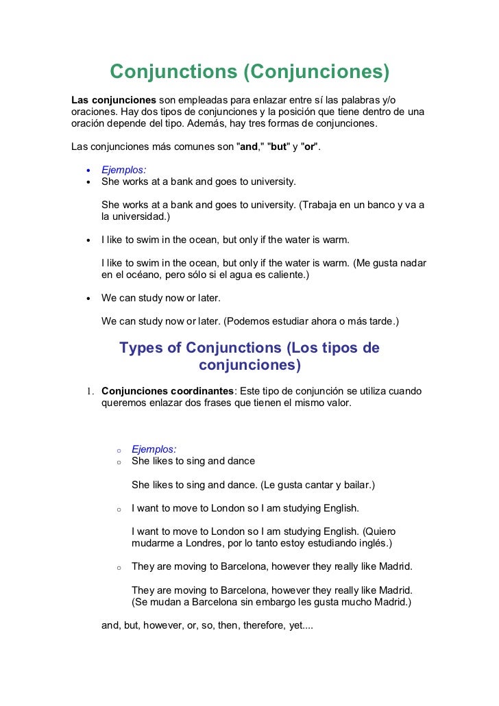 Las Conjunciones Traduccion En Ingles Ejemplos De Uso Las Conjunciones En Una Oracion En Espanol