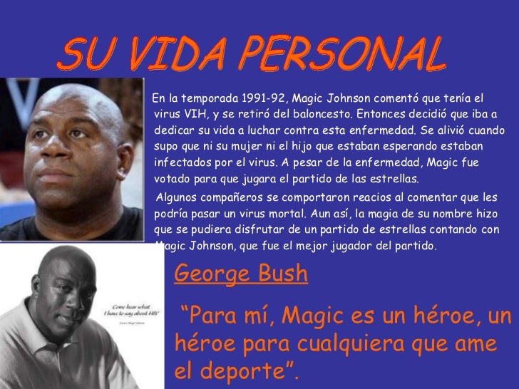 A pesar de lo dicho por Sterling, cabe recordar que Magic Johnson no tiene SIDA Sigue portador del virus VIH, que no ha llegado a desarrollarse Sigue portador del virus VIH, que no ha llegado a. Editor’s note As we recognize the approach of National Black HIV/AIDS Awareness Day (February 7), we are reminded of this important message from Magic Johnson about the Affordable Care ActNo one plans to get sick or hurt I certainly didn't but most people will need medical care at some point in their lives As an athlete, I understood the value of my health insurance. Alzó su voz Magic Johnson comparó el VIH con el coronavirus y arremetió contra las autoridades de Estados Unidos El legendario exbasquetbolista denunció que las desigualdades sociales en su.