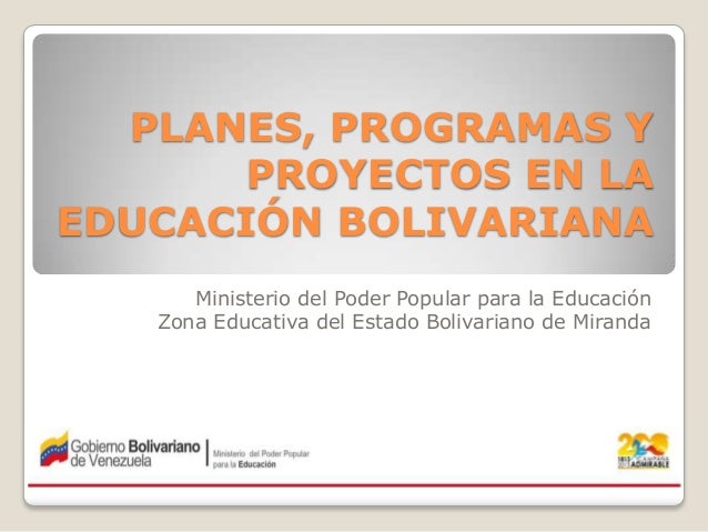 Planes Proyectos Y Programas En La Educacion Bolivariana