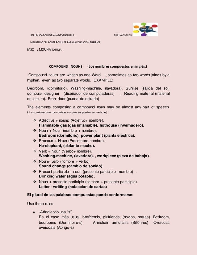 En este vídeo aprenderás "COMPOUND WORDS" que son las palabras compuestas en inglésEstudia todas las lecciones en orden https//wwwyoutubecom/playlist?li. Las palabras compuestas en ingles Estas palabras compuestas a veces están separadas por un guion y otras veces van sin guion;. 24ago Explora el tablero de Eulalia "Palabras compuestas" en Ver más ideas sobre palabras compuestas, actividades escolares, compuestas.