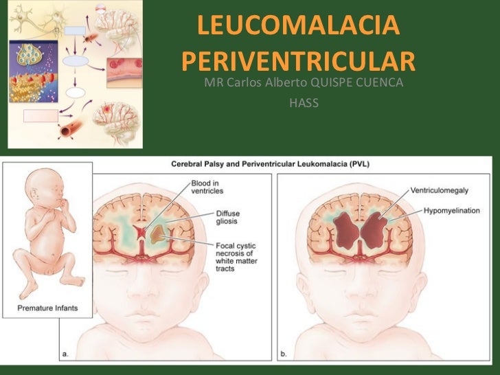 Periventricular leukomalacia (PVL) is a softening of white brain tissue near the ventricles The white matter is the inner part of the brain It sends information between the nerve cells and the spinal cord, and from one part of the brain to another A lack of blood flow to the brain tissue before, during, or after birth causes PVL. Leucomalacia periventricular ¿Qué es la leucomalacia periventricular?. Periventricular leukomalacia is a form of brain injury and one of the important causes of cerebral palsy and cognitive issues in premature infants1 Various studies are being conducted to assess the use of better diagnostic methods and treatment modalities for Periventricular leukomalacia This article discusses about the causes, symptoms, treatment and prevention of periventricular leukomalacia.