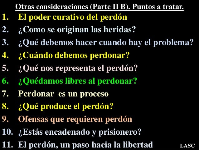 Si seguimos los pasos que indica la Biblia, Dios nos perdonará Él tiene la capacidad de hacerlo aunque nuestros pecados sean graves o los hayamos cometido muchas veces (Isaías 118)Por ejemplo, Dios perdonó al rey David cuando cometió adulterio y un asesinato (2 Samuel )También perdonó a Pablo, quien se veía como el peor de los pecadores (1 Timoteo 115, 16). Sexta clave Saber perdonar “Continúen soportándose unos a otros y perdonándose liberalmente unos a otros” (Colosenses 313)Lo que significa Los matrimonios felices aprenden del pasado, pero no llevan cuenta de viejos agravios ni los usan como base para hacer generalizaciones del tipo “Tú siempre llegas tarde” o “Tú nunca escuchas”. Saber pedir perdon y perdonar Duration Las 3 Fases del Perdón Perdonar, Pedir Perdón y Dar las Gracias Nuevo Documental de la Biblia Reinos en el Tiempo.