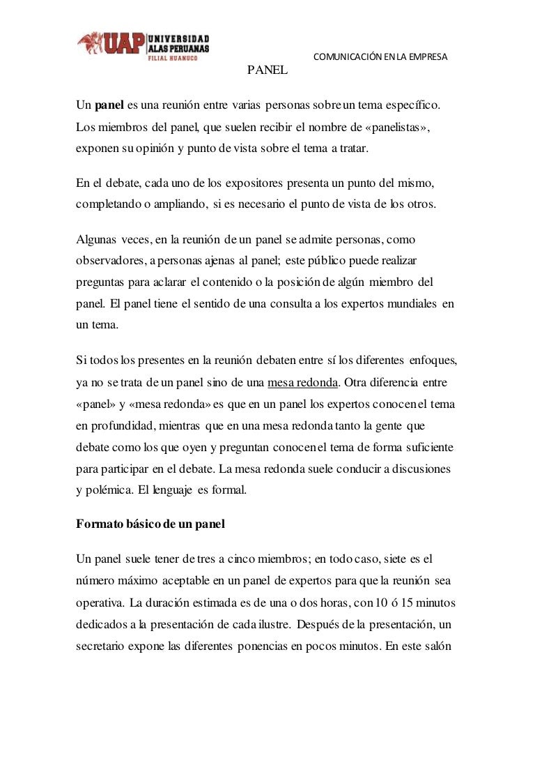 El Panel De Discusion Upla Studocu