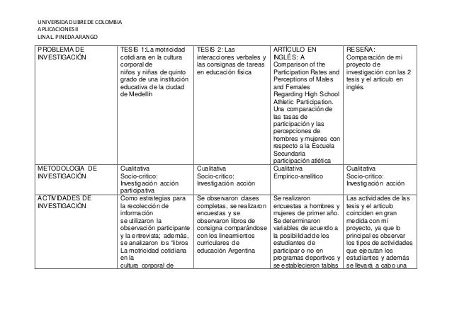 Cuadro Comparativo 2 Tesis Y 1 Articulo En Ingles