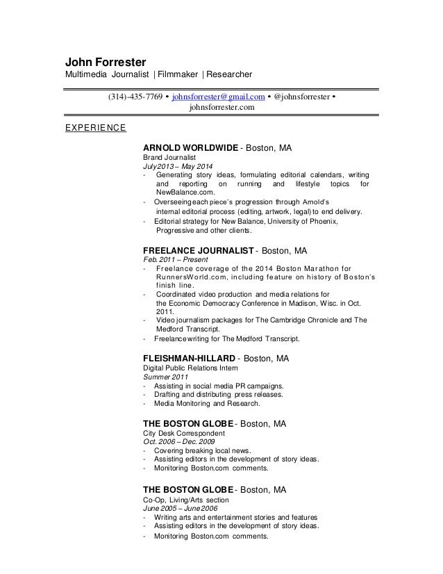 Freelance writers often work for companies as selfemployed contractors and must submit their resumes and writing samples as part of the application process As a freelance writer, it's important. If you have numerous freelance jobs to your credit, you may opt for a resume category devoted entirely to freelance roles Create a chronological freelance list following your professional. A journalist resume is a perfect tool used to represent one’s self when looking for journalist jobs It is only right that it should look powerful in both outlook and content A Resume Profile for aspiring journalists serves as a summary of the applicant’s background, achievements, skills, and journalism or media experiences.